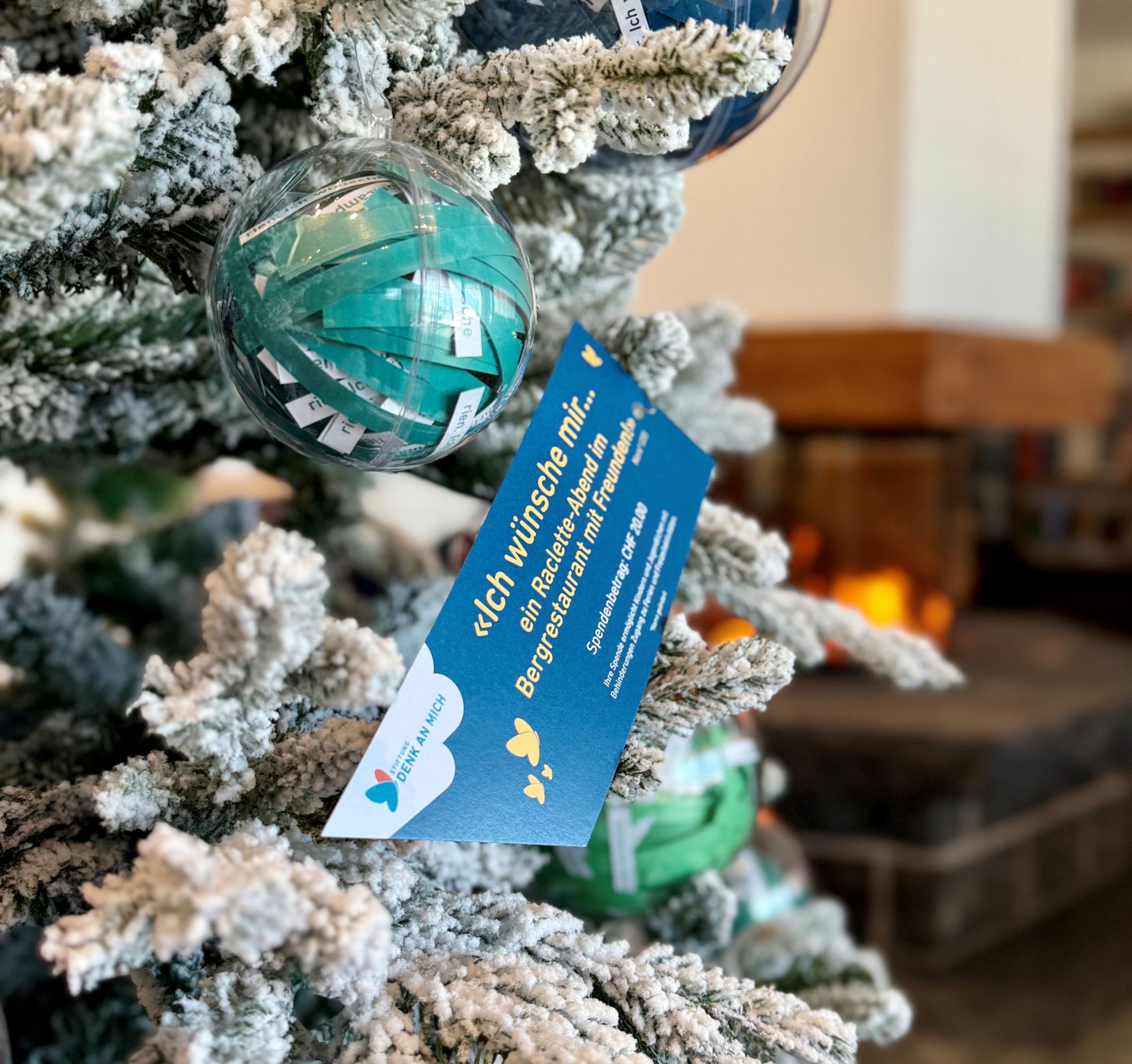 Die Klinik Schönberg und die Hauenstein Gruppe unterstützen mit der Aktion Wunschbaum die Stiftung «Denk an mich» bei der Erfüllung von Wünschen von Kindern und Jugendlichen mit Behinderung.